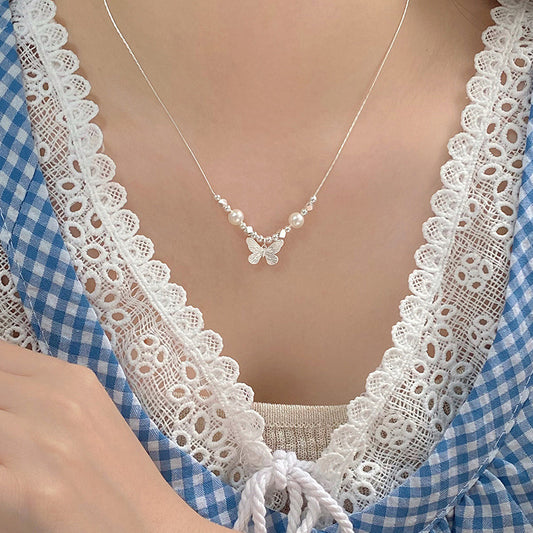 E廠【YC3989N】S925純銀新中式珍珠蝴蝶項鍊女ins輕奢高級設計感鎖骨鏈 24.06-3