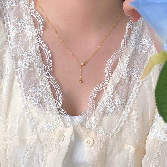 E廠【YC3983N】S925純銀簡約鋯石圓珠流蘇項鍊女冷淡風輕奢氣質鎖骨鏈 24.06-3