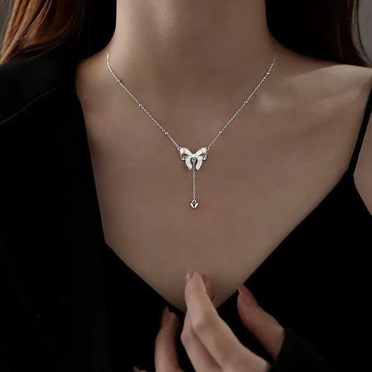 E廠【YC3992N】S925純銀可愛蝴蝶結項鍊女個性輕奢小眾設計高級感鎖骨鏈 24.06-4