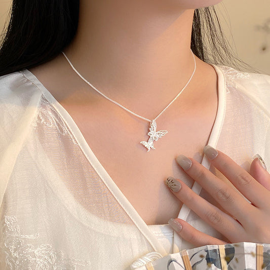 E廠【YC3997N】S999足銀高級雙蝴蝶項鍊女小眾設計百搭清新甜美鎖骨鏈 24.08-2