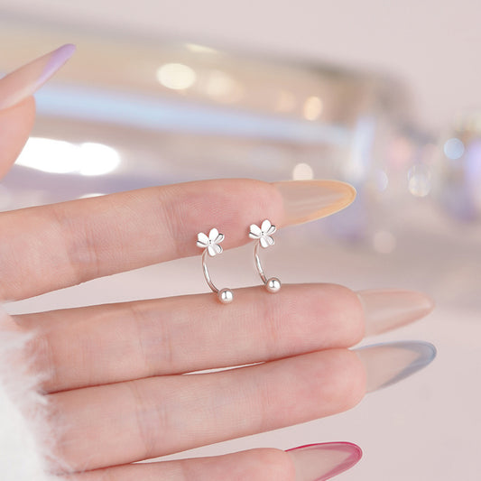 E廠【YC4001E】S999足銀小巧三葉草U型螺絲耳環女養洞耳高級感防丟耳飾 25.07-1