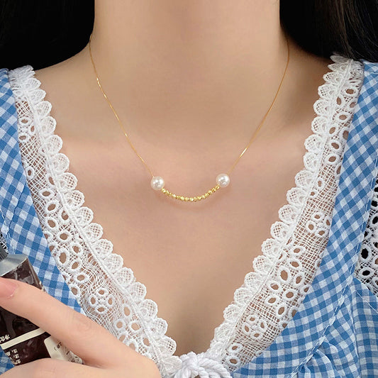 E廠【YC4004N】S925純銀微笑切花珠項鍊小眾2024輕奢高級感個性設計新款 24.06-3