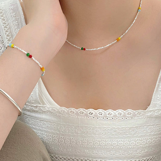 E廠【YC4002N】S999足銀可愛彩珠碎銀項鍊手鍊腳鍊系列三件套 24.06-4