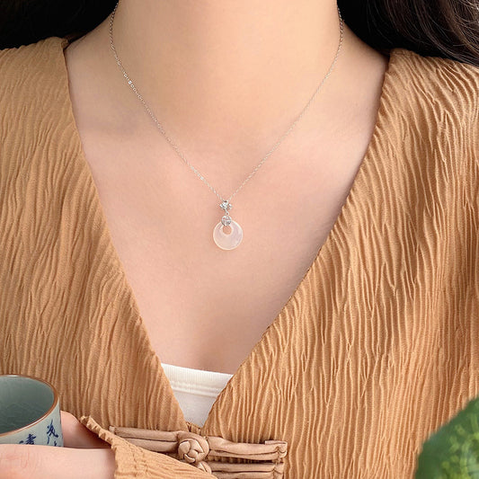 E廠【YC3987N】S925純銀新中式雲朵福字平安扣項鍊女復古高級感鎖骨鏈 24.09-2