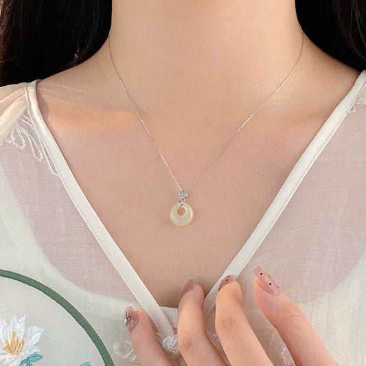 E廠【YC4055N】S925純銀新中式四葉花平安扣項鍊女氣質高級新款鎖骨鏈 24.08-4