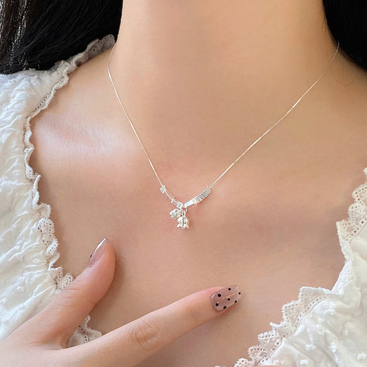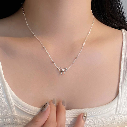 E廠【YC4054N】S925純銀百搭蝴蝶結項鍊女簡約小眾高級設計感清新鎖骨鏈 24.08-1