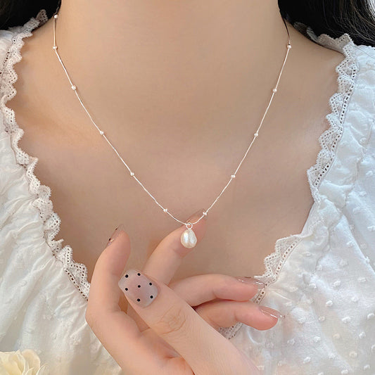 E廠【YC4058N】S925純銀簡約珍珠項鍊女小眾設計清新甜美時尚氣質鎖骨鏈 24.08-5
