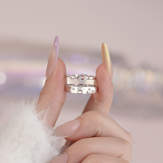 E廠【YC4064R】S999足銀可愛太空人情侶對戒卡通小眾清新簡約個性戒指 25.07-2