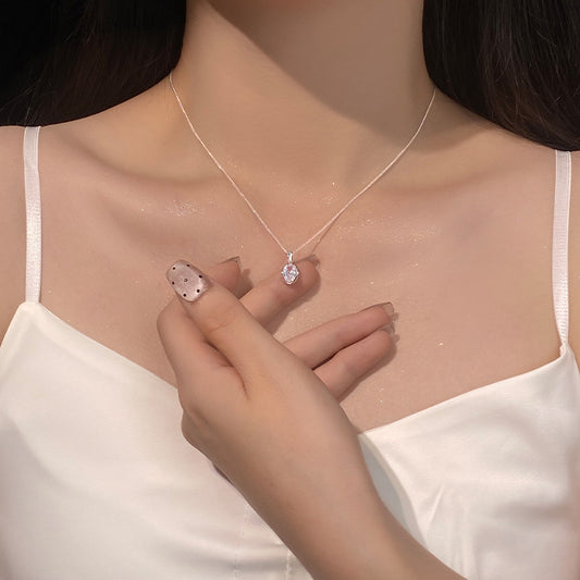 E廠【YC4067N】S925純銀甜美不規則橢圓鑲鑽項鍊女百搭氣質簡約鎖骨鏈 24.09-2