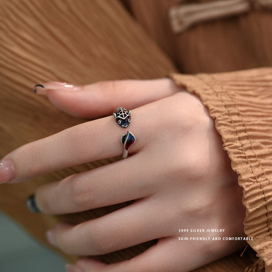 E廠【YC5168R】S999足銀彩色錦鯉戒指復古做舊小眾設計感民族風轉運開口指環 24.01-1