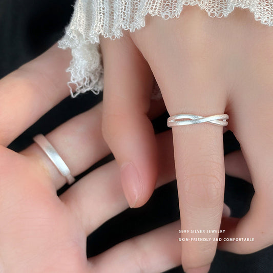 E廠【YC5114R】S999足銀時尚幾何交叉情侶對戒個性簡約甜蜜指環可調戒指 24.05-3