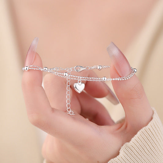 E廠【YC5129SL】S925純銀愛心雙層手鍊甜美氣質簡約百搭可愛清新韓系手飾 25.01-1