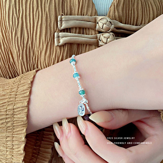 E廠【YC5166SL】S925純銀字牌碎銀子手鍊本命年國風配件手串輕奢高級感手飾品 24.01-2
