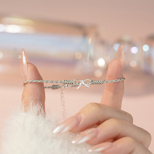 E廠【YC5134SL】S925純銀ins蝴蝶結編繩手鍊女高級小眾清新甜美文藝編繩手飾 25.04-3