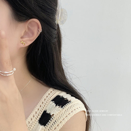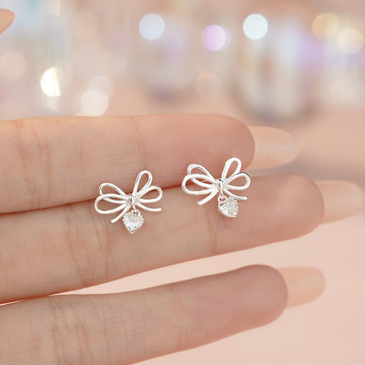 E廠【YC5118E】S999足銀高級感蝴蝶結耳環女閃鑽小眾甜美氣質精緻養耳洞耳環 24.05-5