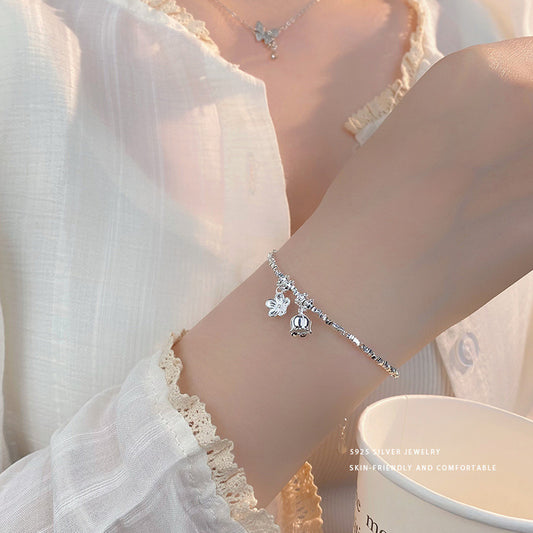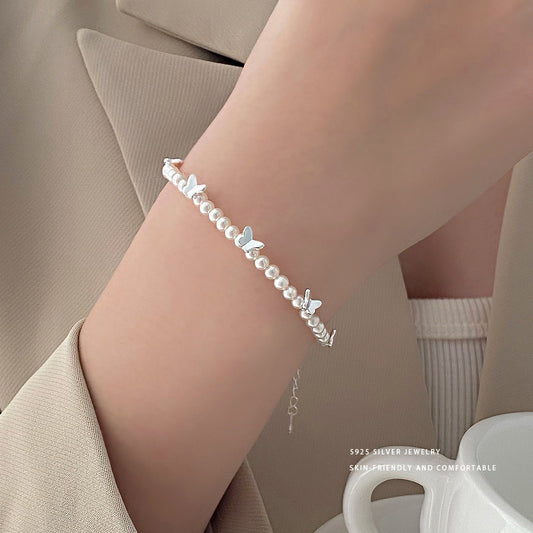 E廠【YC5283SL】S925純銀甜森蝴蝶珍珠手鍊女輕奢小清新仙女風手飾品 24.01-3