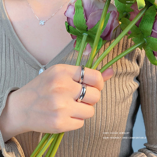 E廠【YC5283R】S999足銀簡約光面情侶戒指女個性時尚素圈新款可調指環 24.05-3