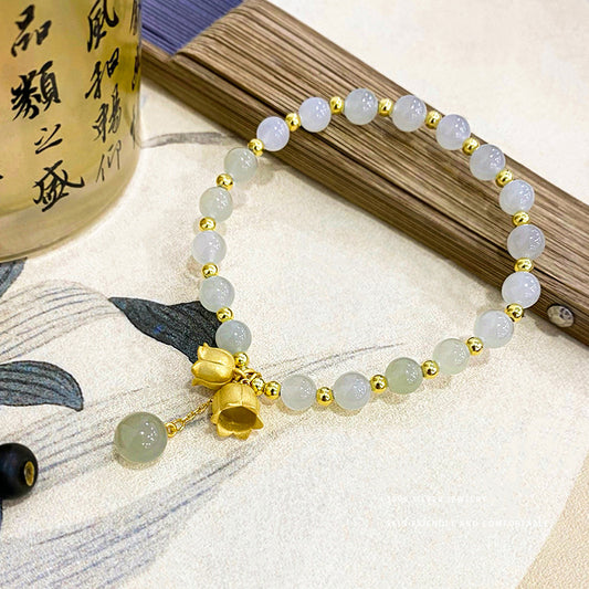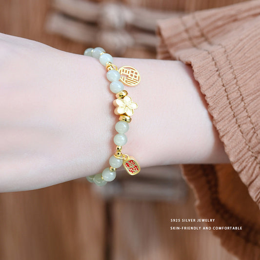 E廠【YC5265SL】S999足銀國風和田玉鈴蘭花手鍊女淡雅氣質高級感手串飾品 24.05-1