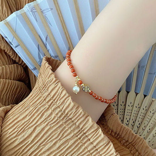 E廠【YC5242SL】S925純銀南紅銅錢手串國風新中式本命年國潮手鍊輕奢高級感女 24.01-3