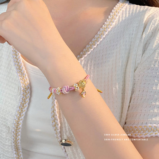 E廠【YC5260SL】S999足銀簡約結繩手環女高級感小眾設計感新款手鍊手飾品 24.05-3