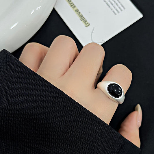 E廠【YC5271R】S925純銀黑白瑪瑙橢圓戒指時尚個性冷淡風高級感小眾開口指環 24.01-2