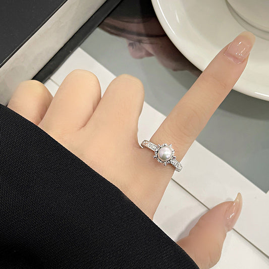 E廠【YC5297R】S925純銀時尚紫鑽珍珠戒指重工肌理感輕奢高級感個性開口指環 24.01-2