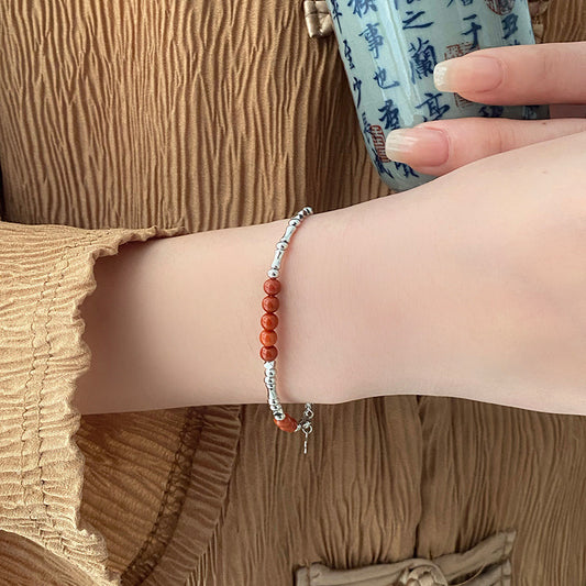 E廠【YC5262SL】S925純銀紅瑪瑙竹節手鍊國風配件本命年新春喜慶高級感手串 24.01-2