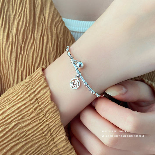 E廠【YC5269SL】S925純銀本命年福牌竹節手鍊新中國民族風漢字輕奢小眾手飾 24.01-4