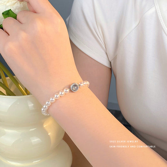 E廠【YC5299SL】S925純銀夢幻海藍珍珠手鍊女法式優雅氣質手串設計感手飾品 24.05-5