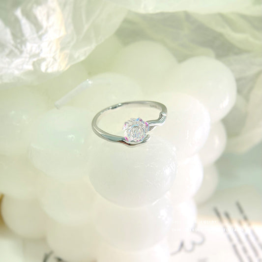 E廠【YC5298R】S925純銀小清新玫瑰花戒指女森系小眾設計感仙女風開口戒 24.01-4