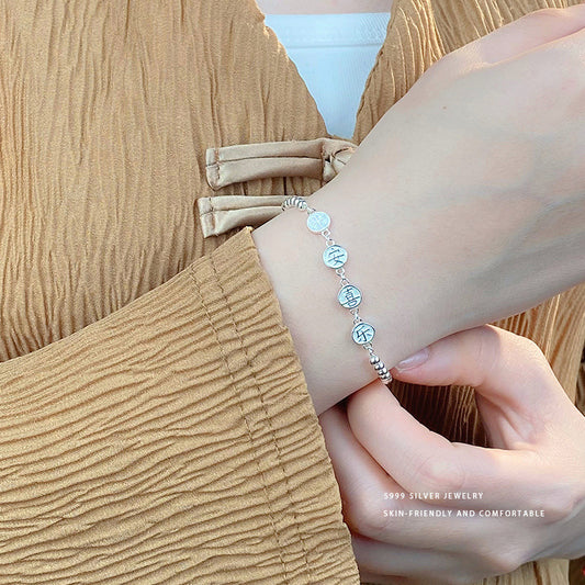 E廠【YC5325SL】S999足銀國風平安喜樂手鍊女新中式新款爆款手飾 24.04-4