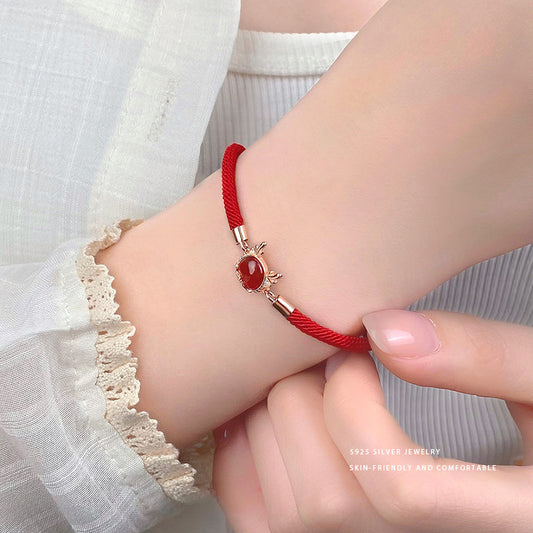 E廠【YC5310SL】S925純銀新中式紅瑪瑙龍手鍊女紅繩新年禮物紅色小眾手飾 24.02-1