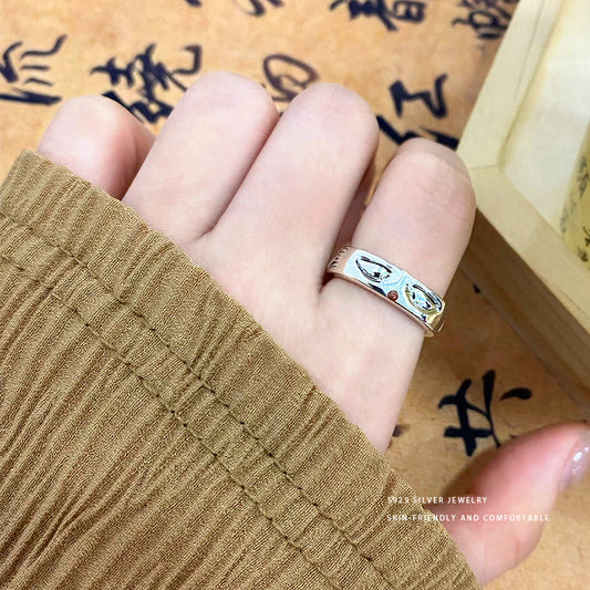 E廠【YC5302R】S925純銀國風狐狸眼戒指女復古新中式高級感本命年開口戒 24.01-3
