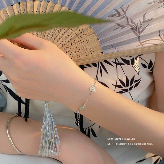 E廠【YC5334SL】S999足銀新中式和田玉蝴蝶手鍊女小眾高級感國風國潮手飾 24.05-2