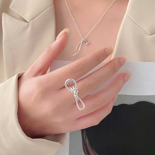 E廠【YC5310R】S925純銀時尚個性線蝴蝶結ins冷淡風小眾設計感開口指環女 24.01-1