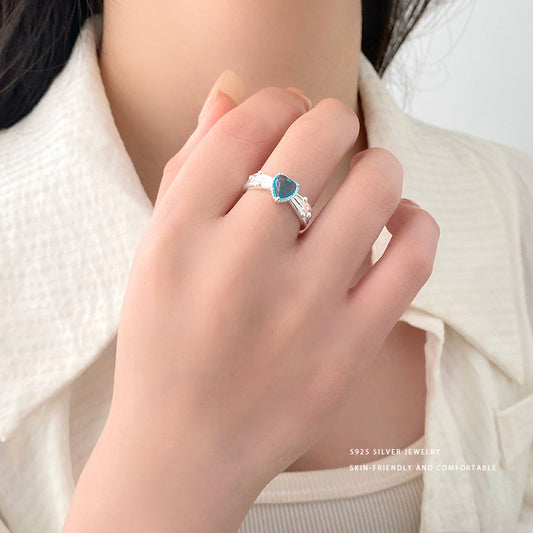 E廠【YC5305R】S925純銀清純藍色桃心戒指女甜美十足少女感小清新開口戒 24.01-4