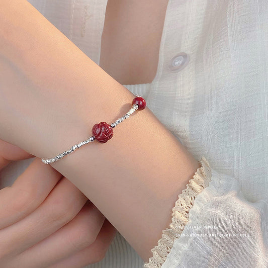 E廠【YC5329SL】S925純銀本命年紫金砂蓮花碎銀子手鍊女輕奢高級感手飾品 24.02-3