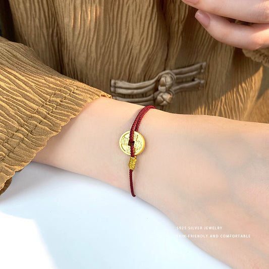 E廠【YC5317SL】S925純銀圓幣編繩手鍊國風新中式文藝復古輕奢編織手鍊 24.07-1