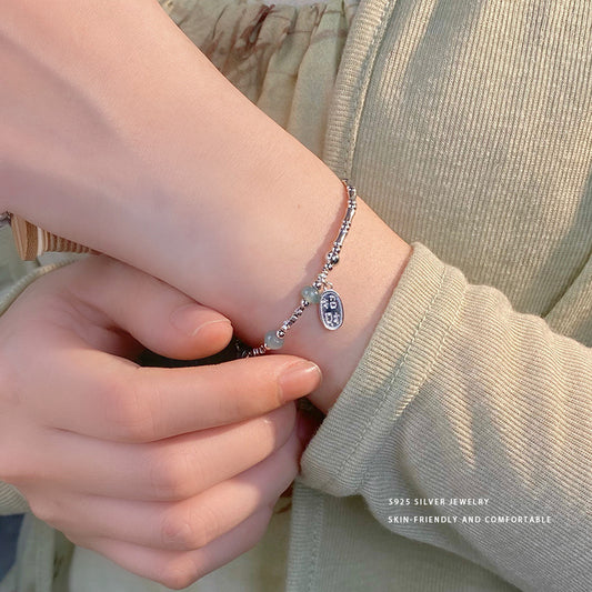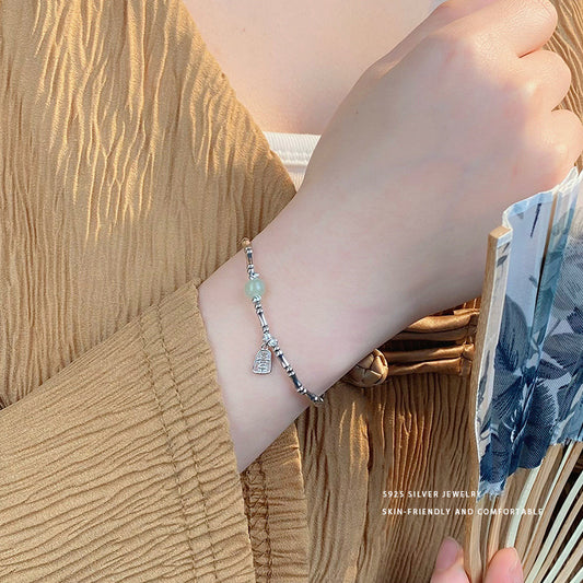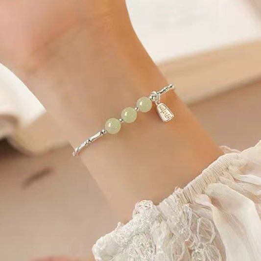 E廠【YC5355SL】S925純銀和田玉喜樂竹節手鍊女新款輕奢小眾精緻閨蜜手飾 24.03-4