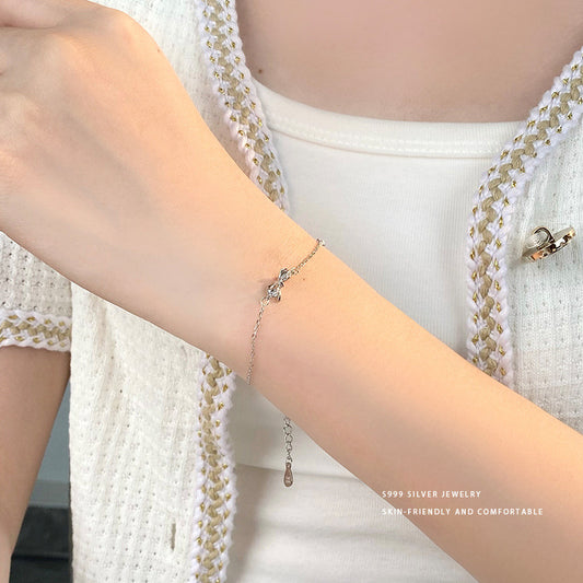 E廠【YC5344SL】S999足銀甜美蝴蝶結手鍊女時尚ins仙女風洋裝百搭手飾 24.05-5