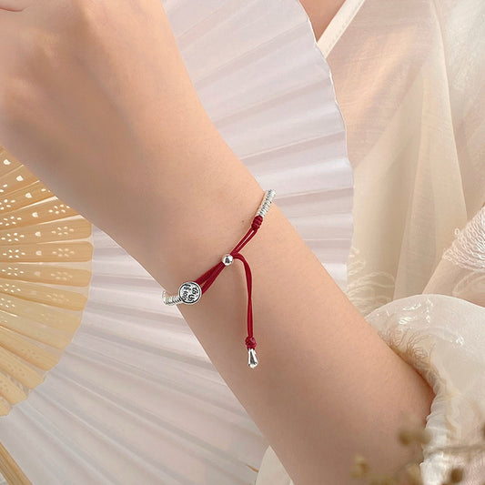 E廠【YC5335SL】S925純銀本命年平安喜樂銀坨手鍊女紅繩國風手飾 24.08-4