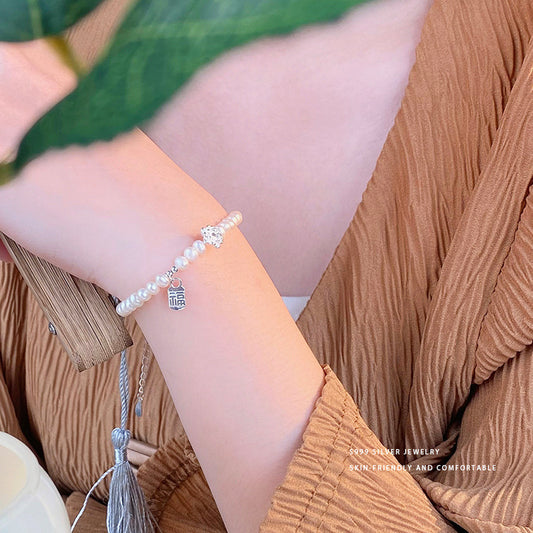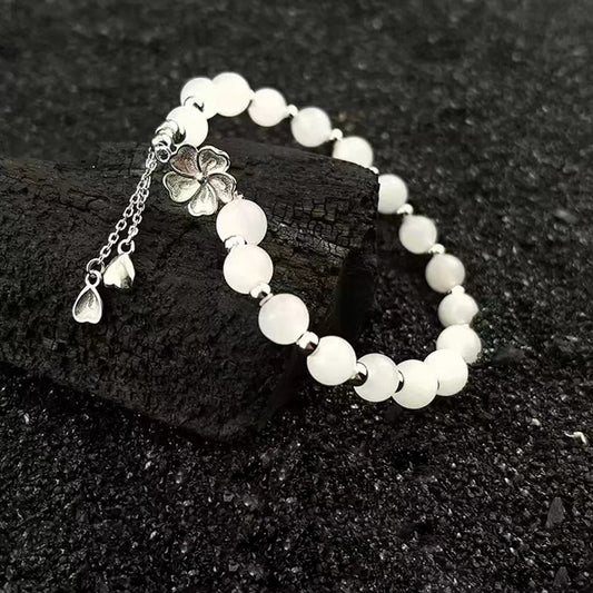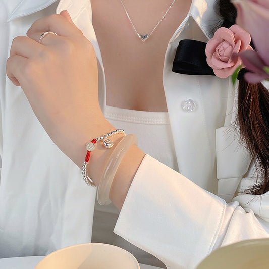 E廠【YC5341SL】S925純銀桃花和田白玉愛心手鍊女輕奢小眾設計學生手串手飾品 24.04-2