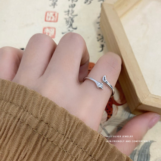 E廠【YC5353R】S925銀個性狐狸戒指女民族風新中式百搭國風動物開口指環 24.04-1