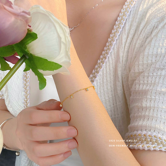 E廠【YC5351SL】S925純銀韓系四葉草碎銀尖晶石手鍊女簡約百搭氣質手飾品 24.03-5