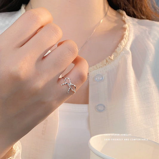 E廠【YC5356R】S925銀甜美蝴蝶結戒指女夏季少女感小清新新款開口戒尾戒 24.04-3