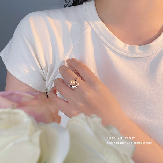 E廠【YC5359R】S925純銀個性珍珠波浪戒指女法式氛圍感浪漫新款開口指環 24.05-1