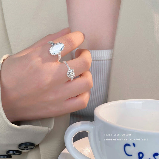 E廠【YC5360R-YC5396R】S925純銀時尚蕾絲橢圓愛心戒指女個性ins復古法式風指環 24.02-3