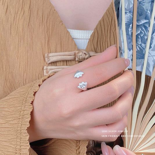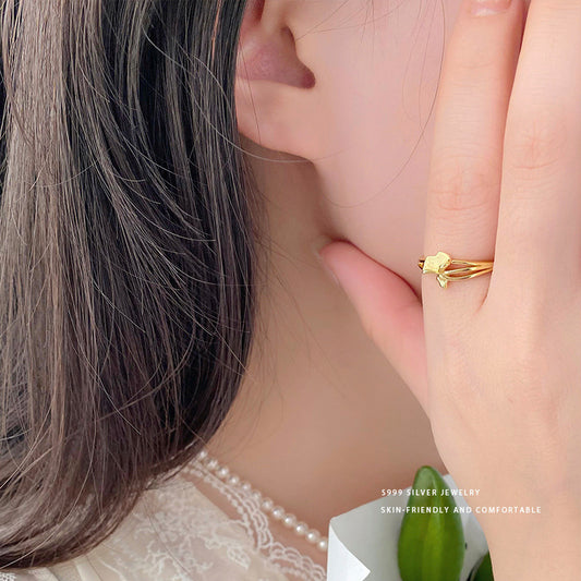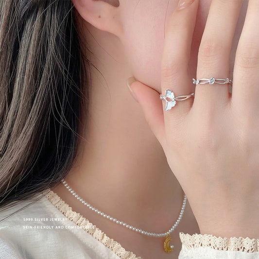 E廠【YC5373R】S999足銀精美杏葉戒指女秋冬季氣質氛圍感輕奢可調整指環 24.02-3