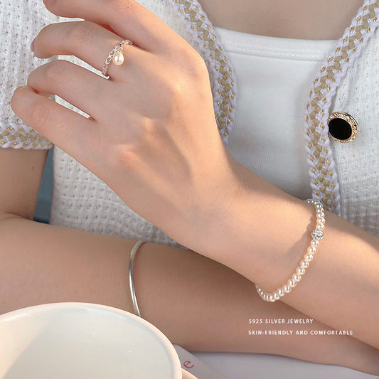 E廠【YC5373SL】S925純銀法式香巴拉珍珠手鍊女輕奢浪漫氛圍感新款手飾 24.05-1