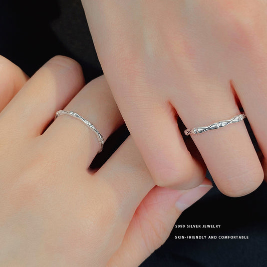 E廠【YC5369R】S999足銀新中式竹節情侶對戒男女款時尚個性國風指環 24.04-4